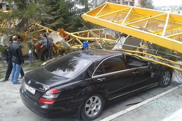 ЧП произошло сегодня, 24 апреля, в 17.50 на строительной площадке возле дома по адресу улица Шевченко, 15 в Октябрьском районе. К слову сказать, напротив стройки расположено здание Генеральной прокуратуры РФ в Сибирском федеральном округе и упавший кран раздавил "Мерседес" с маячком на крыше, предположительно, принадлежащий одному из сотрудников учреждения. Задел он и еще несколько автомобилей, в которых, к счастью, никого не было.
