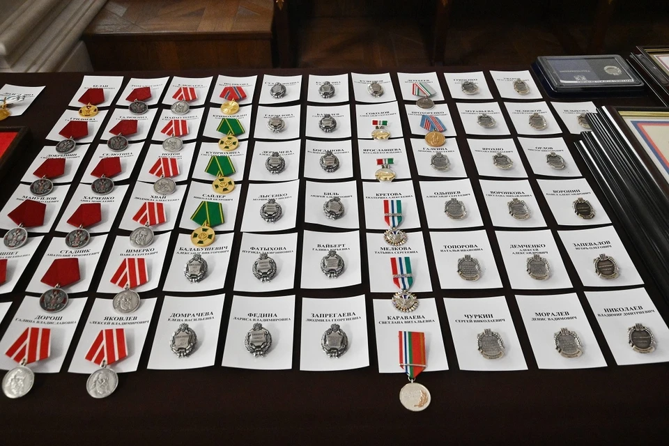 Среди выданных наград оказались ордена Дружбы, а также орден «За заслуги в культуре и искусстве». Несколько человек получили медали ордена «Родительская слава» и медали Луки Крымского. Также вручили знаки отличия «За заслуги перед Отечеством» первой и второй степеней, нагрудные знаки заслуженных врачей, работников высшей школы, машиностроителей и метеорологов России. Кроме того, наградили заслуженных работников сельского хозяйства, социальной защиты, художников, а также выдали почетные грамоты и благодарности от президента.